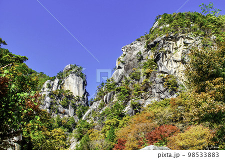 山梨県 昇仙峡 覚円峰と天狗岩 紅葉の風景 日本遺産