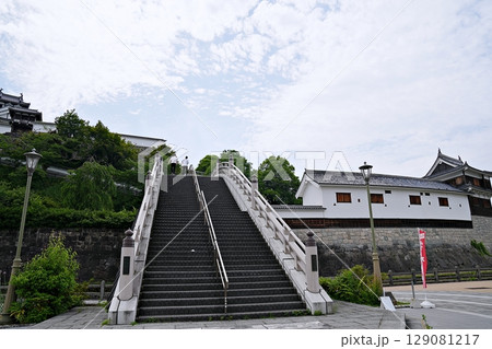 京都 福知山 福知山城 昇竜橋と天守閣・隅櫓(東方向から、夏)