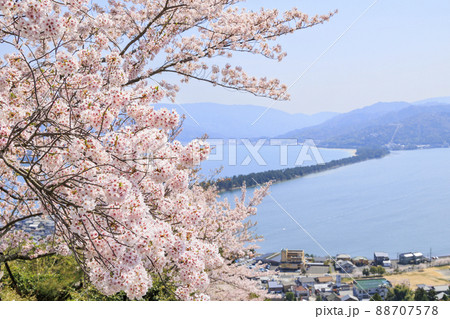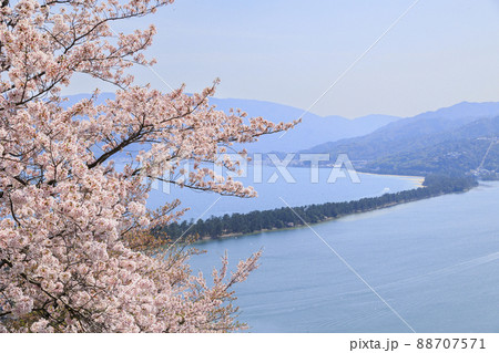 満開の桜と天橋立、傘松公園、京都府宮津市