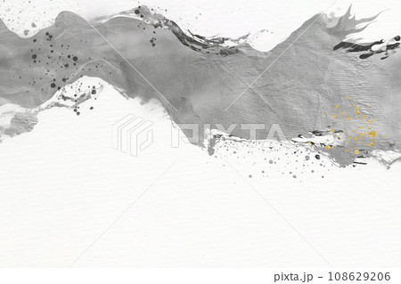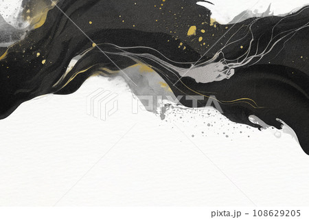 日本やアジアのイメージ、黒と銀の優雅な筆のアート背景。