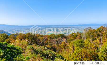 展望デッキから見た秋晴れの悠々とした富士山の風景