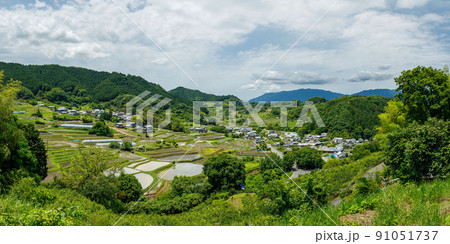2022年6月14日の飛鳥 明日香の棚田 パノラマ 上居から上居、阪田、稲渕の棚田