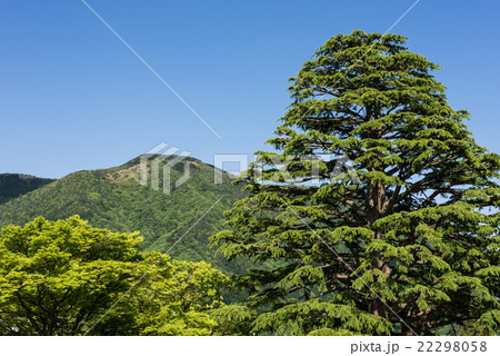 初夏の強羅公園ヒマラヤ杉と明星ヶ岳