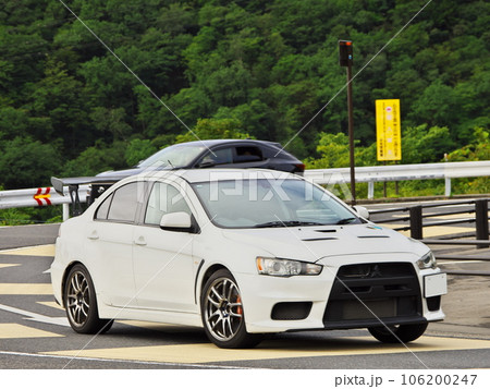 夏の日光 明智平ロープウェイ山麓駅付近のいろは坂を上る車