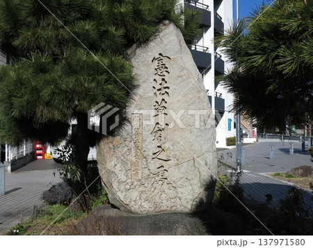 横浜市金沢区の洲崎町交差点角にある「憲法草創之處」の碑(明治憲法起草の碑)