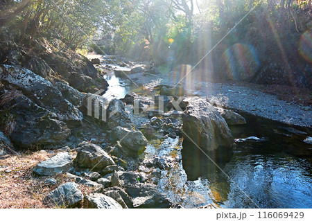 木漏れ日が射し込む都幾川の渓谷