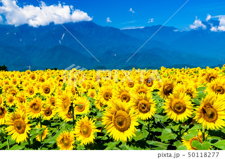 山梨県 北杜市明野 ひまわり畑と南アルプス