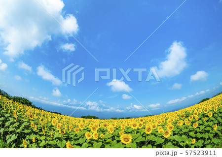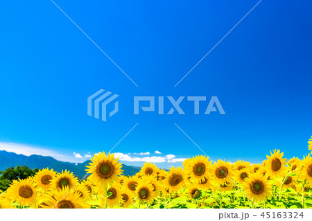 ひまわりと青空の風景(山梨県北杜市明野町)【8月】