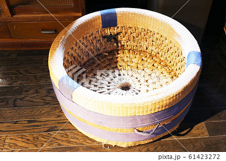 風景物撮り写真 日本の子守 えじこ いじこ 籠 昔の日本の農村の赤ちゃんのベット