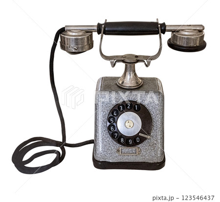 Old rotary phone connecting to the past on white background