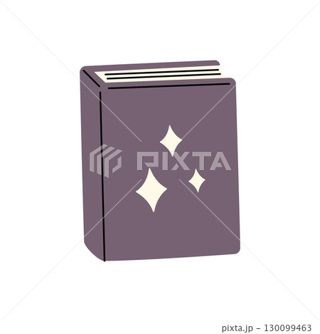 Magical book with sparkle symbols on the cover. Simple linear fantasy concept
