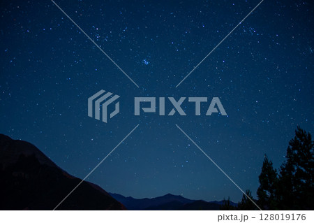 満天の星空とシルエットの森 幻想的な夜空と自然風景