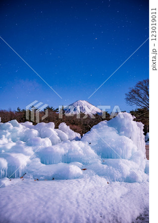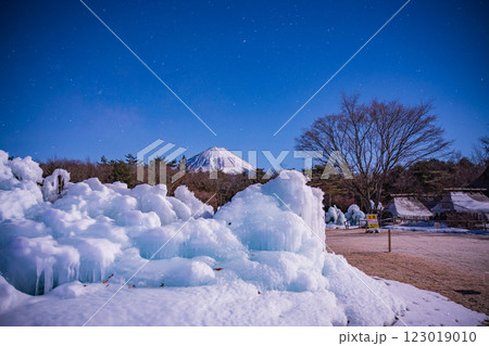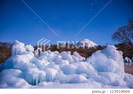 【山梨県】星降る夜の西湖野鳥の森公園、氷のオブジェと富士山