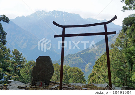 【四国八十八ヶ所】第六十番横峰寺奥の院 星ヶ森 春の鉄の鳥居と残雪の石鎚山 愛媛県西条市