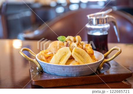 【シロップを背景に】星乃珈琲の「フレンチトースト(バナナとキャラメルナッツ)」