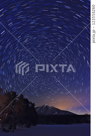 夜の富士、北極星