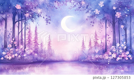 月と夜空のファンタジックが水彩背景「AI生成画像」
