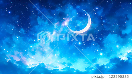 神秘的な三日月が浮かぶ夜空のイラスト背景