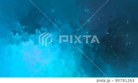 手描きの水彩の星空、宇宙、キラキラ背景