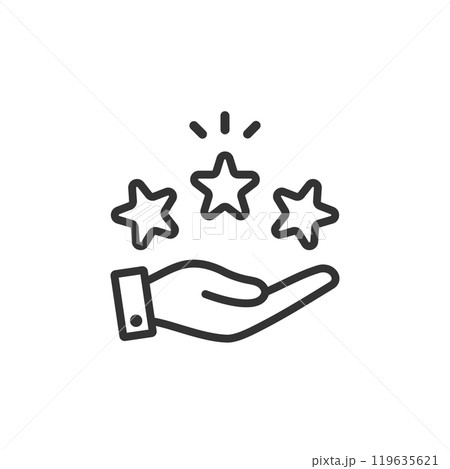 手のひらに乗せた輝く3つ星のアイコン(線画・白黒)