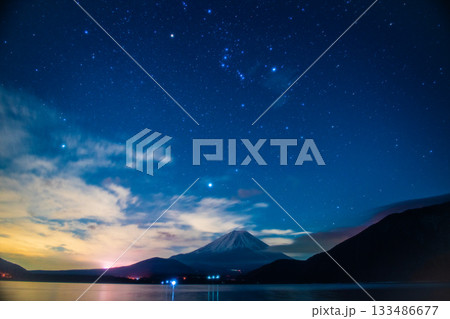 満天の星と本栖湖から望む富士