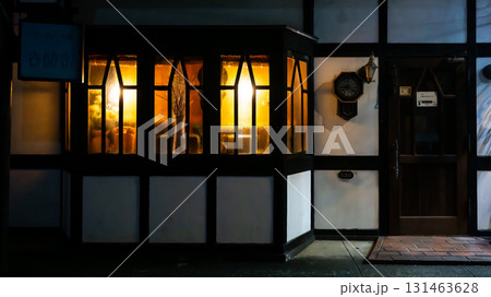 夜に静かに灯るレトロ喫茶店の外観|昭和の面影が残る街角の風景