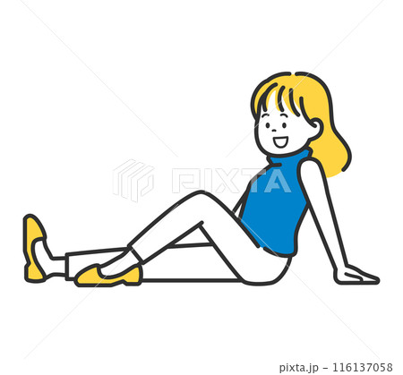 笑顔で座っている女性のイラスト