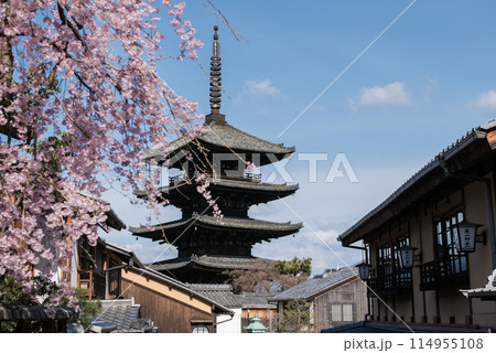 清水寺の桜の風景 京都の桜の名所 青空に映える三重塔 春の京都観光スポット