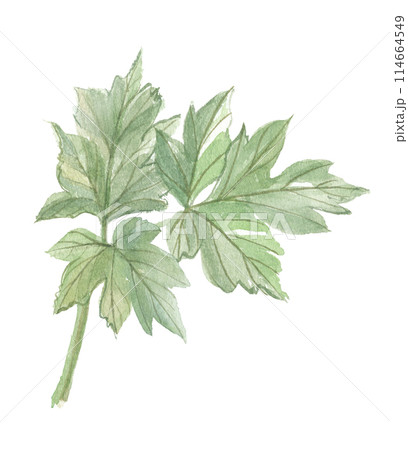 水彩で描いた明日葉と茎