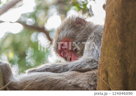 木の上で居眠りするニホンザル 嵐山モンキーパークいわたやま
