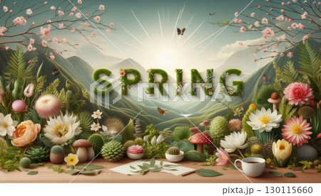 Vibrant Spring Typography in Floral Nature-Inspired 3D Lettering with Generative AI.