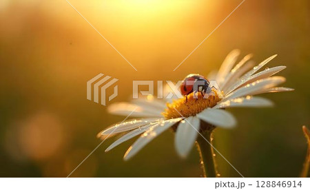 A ladybug on a daisy amidst a colorful spring meadow, capturing the charm of the season and its lively inhabitants