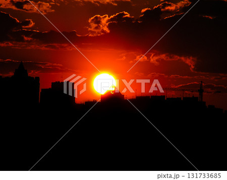 Autumn red sunset with a purple sky