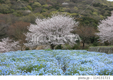 善通寺五岳の里 市民集いの丘公園の桜とネモフィラ