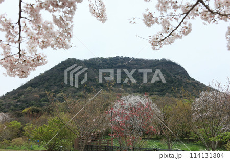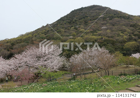 善通寺五岳の里 市民集いの丘公園の桜と筆の山