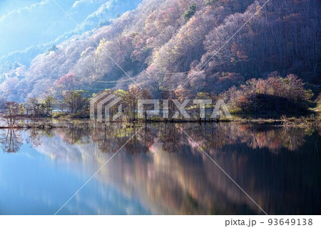 新緑の芽吹きが美しい秋元湖(福島県裏磐梯、5月上旬)