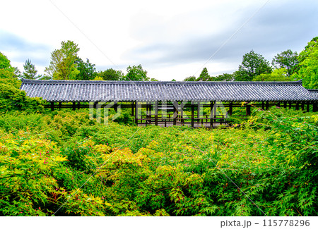 京都、東福寺の青もみじと通天橋