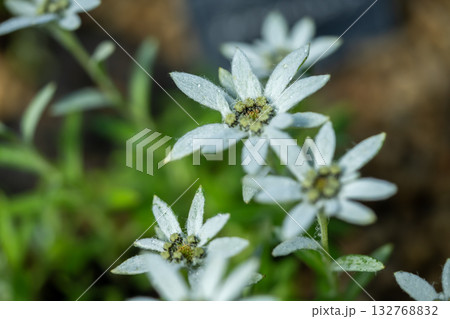 白山の砂防新道に群生するニリンソウ(二輪草)の花 初夏の白山御前峰登山