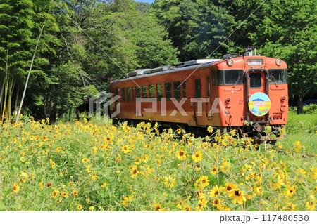 小湊鐵道「キハ40タラコ色・急行列車とひまわり畑」