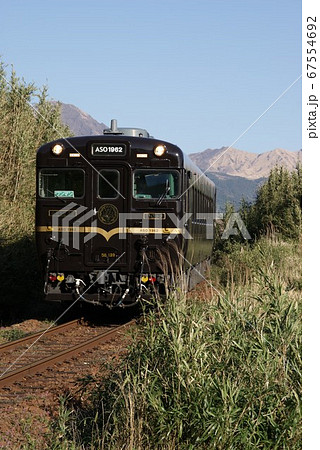 阿蘇の外輪山を下り立野のスイッチバックへ向かう観光列車「あそ1962」(キハ58+キハ28)
