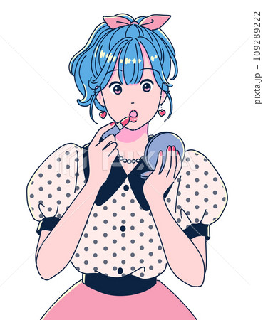見上げながら感心する、少女まんが風のお姉さんイラスト