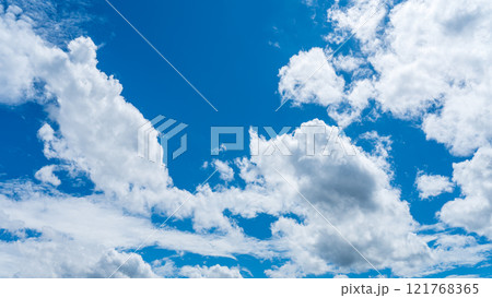 真夏の青空に流れるたくさんの白い雲