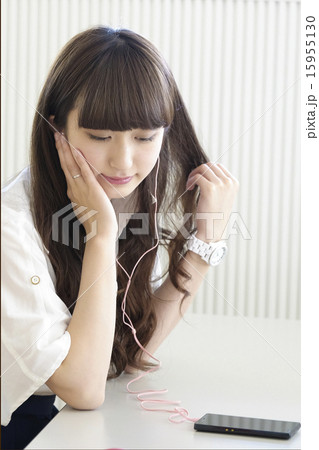 スマホで音楽を聴く女性