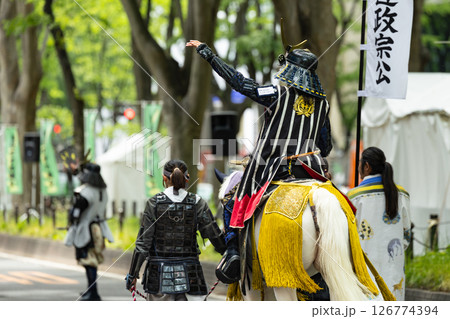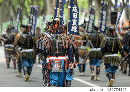 仙台青葉まつり 時代絵巻武者隊巡行采配と山車