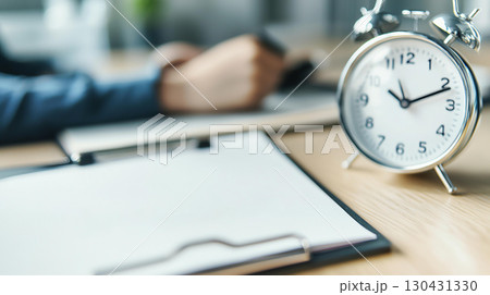 Clock on desk with clipboard, indicating time management and productivity