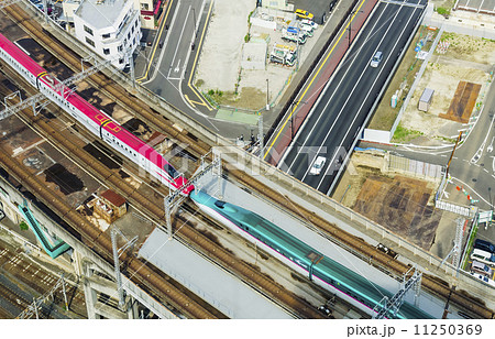 仙台の町並みを走行する新幹線 スーパーこまちとはやぶさ