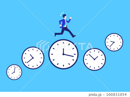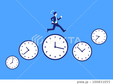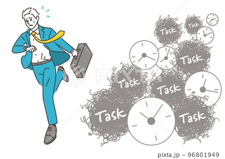 時間と仕事に追われる多忙な男性ビジネスパーソン【ベクターイラスト素材】