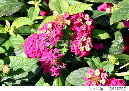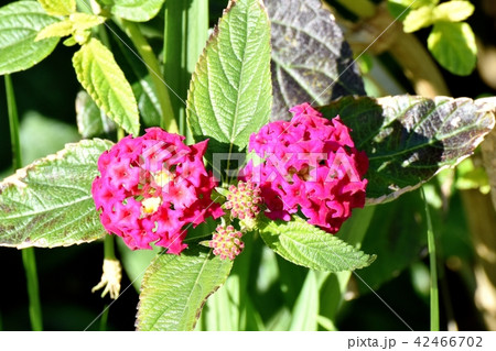 三鷹中原に咲く濃いピンクのランタナ(シチヘンゲ)