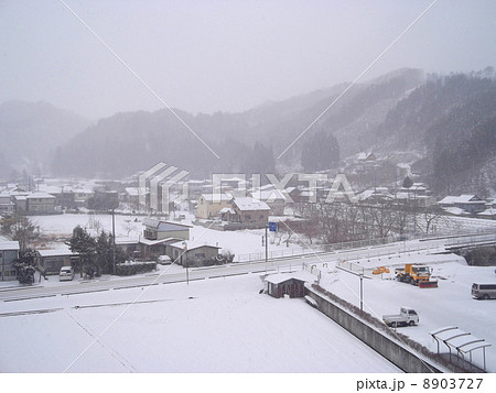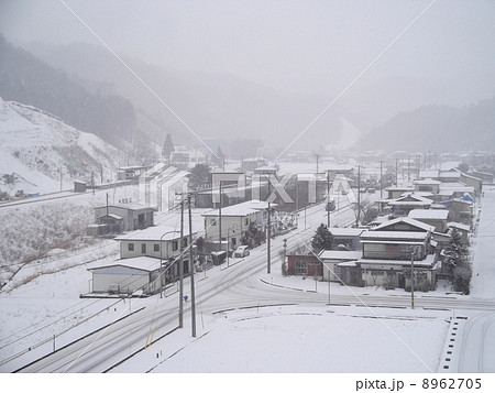 岩手県普代村の雪景色(普代村役場から普代駅方向)