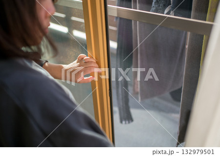 服を脱ぎ捨て、着替えてジムに向かう私服の若い女性 ヨガ ストレッチ ダイエット 健康